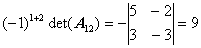 Вычислим алгебраические дополнения элементов матрицы: