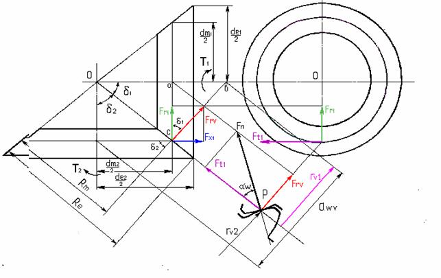 δ1 и δ2 - Углы делительных конусов шестерни и колеса