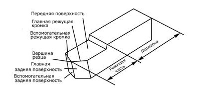 Резец (рис.9) состоит из режущей части и державки, служащей для закрепления резца в резцедержателе. Режущая часть имеет следующие элементы: переднюю поверхность, по которой сходит стружка; главную заднюю поверхность, которая обращена к поверхности резания заготовки; вспомогательную заднюю поверхность, обращенную к обработанной поверхности заготовки; главную режущую кромку, образованную пересечением передней и главной задней поверхностей; вспомогательную режущую кромку, образованную пересечением передней и вспомогательной задней поверхностей; вершину резца, полученную пересечением главной и вспомогательной режущих кромок. Вершина резца может быть острой или закругленной. ![]() Чтобы обеспечить необходимую режущую способность инструмента, получить требуемую точность и качество поверхности детали, необходимо правильно выбрать геометрию резца, т.е. величины углов режущей части резца. Различают главные углы резца (углы рабочего клина) и углы в плане. Главные углы резца (рис.12): передний угол ?, главный задний угол ?, угол заострения ?, угол резания ?. ![]() Углами в плане называются углы между кромками резца и направлением подачи (рис.1). С уменьшением величины главного угла в плане ? и вспомогательного угла в плане ?1 шероховатость обработанной поверхности снижается. |