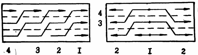 (при длине >500 мм); г – обратно - ступенчатым от середины к краям.