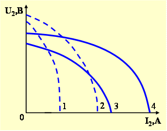 Рис. 2.5. Внешние характеристики трансформатора со ступенчатой настройкой
