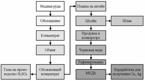схема производства меди, показана на рис. 1.1, а подробное описание способа