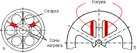 нагрева перед сваркой специально установленных распорных элементов
