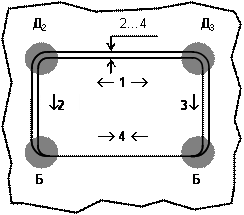 1, 2, 3, 4 – сварные швы, выполняемые обратноступенчатым способом: шов 1 сваривают