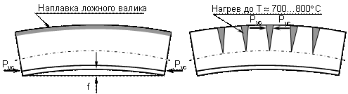 расположены выше оси центров тяжести сечений. Метод называют "правка