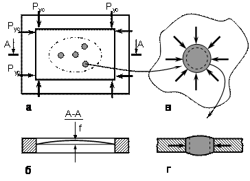 так, чтобы произошла усадка металла. Механизм усадки иллюстрирует рис.3.56,в,