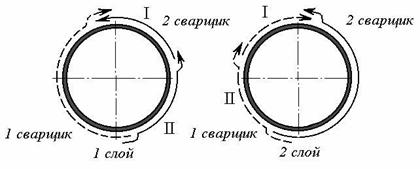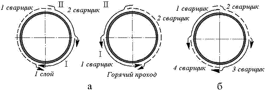 стыка двумя сварщиками (по циферблату часов) 12-3-6 и 12-9-6, при этом