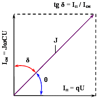 Рис.1.27. Векторная диаграмма токов в диэлектрике в переменном электрическом поле