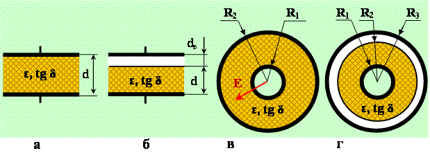 Рис.1.29. Схемы рабочих конденсаторов установок диэлектрического нагрева