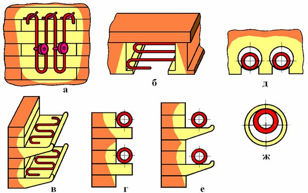 рис.1.2, в, нагревательные элементы изготовленные из труб укладываются в