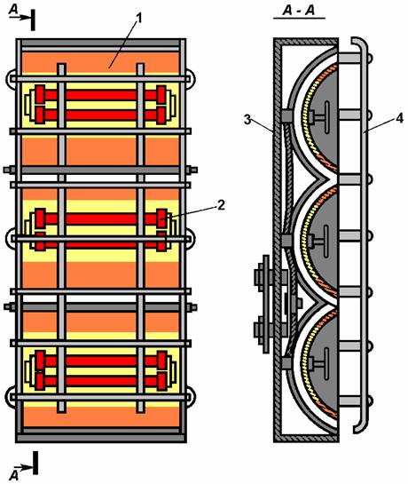 Рис.1.4. Переносная излучательная панель: 1 – отражающий экран; 2 – электронагреватель; 3 – корпус; 4 – ограждение