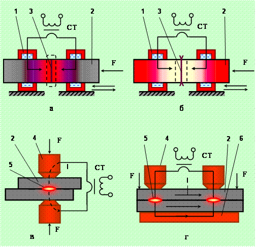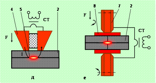 водоохлаждаемые токоподводы 1 (рис.1.14, а). В месте сварки 3 происходит
