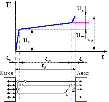 причиной нелинейности вольтамперной характеристики дуги (рис.2.7) и сильно