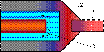 введена трубка 3 с интенсивно циркулирующей охлаждающей жидкостью.
