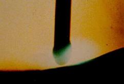 поверхностного натяжения не могут удержать ее на торце электрода и капля под