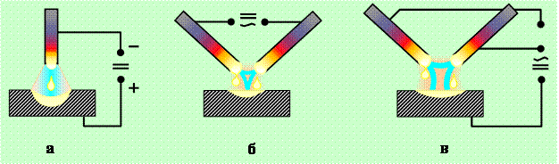электрод соединен с отрицательным, а основной металл с положительным полюсом