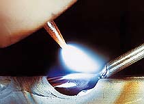 помощи специального состава, наносимого на поверхность, электродной проволоки,