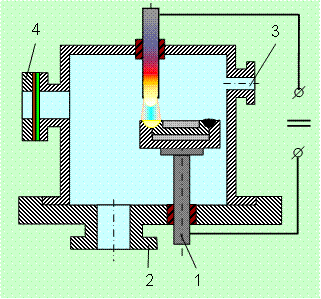 создается вакуум, зятем камера заполняется аргоном, гелием или смесью газов