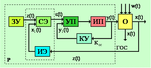 можно представить в виде обобщённой функциональной схемы САУ с ОС.