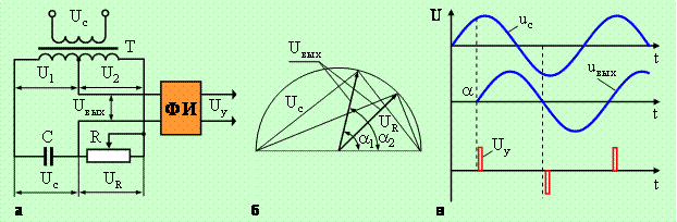 через нуль формирует на своём выходе импульсы управляющего напряжения Uy