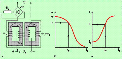 Рис. 2.6. Магнитный усилитель: а – схема; б –