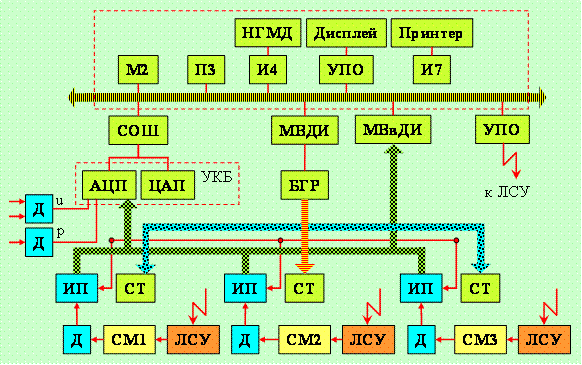 информацией УПО. Для ввода данных о параметрах режима используется 32-канальный аналого-цифровой преобразователь АЦП,