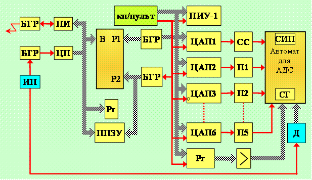 преобразователя ЦАП, входящего в состав УКБ. К АЦП подключены датчики напряжения